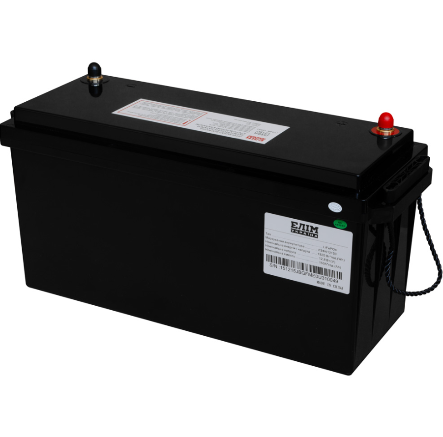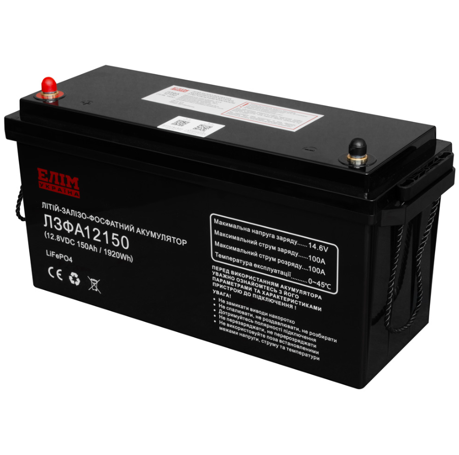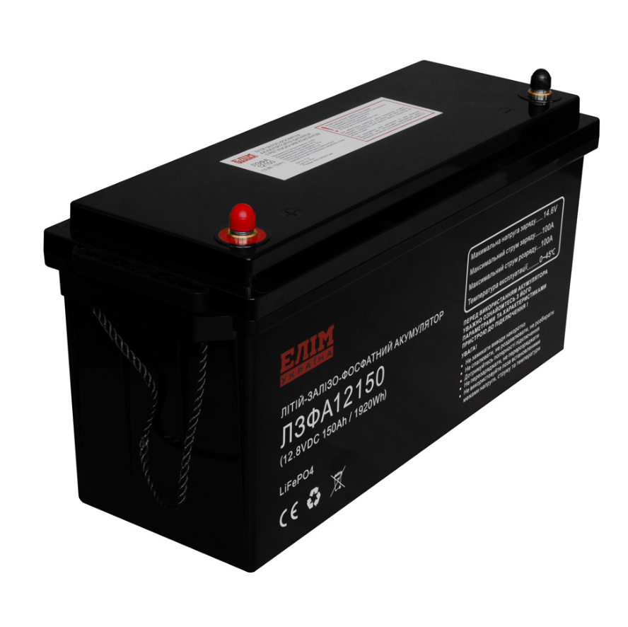 Elim-Украина предлагает литиевый аккумулятор модели ЛЗФА12-150, который отличается долговечностью, эффективностью и стабильной работой. Номинальное напряжение составляет 12,12.8 В, а ёмкость — 150 А·ч.