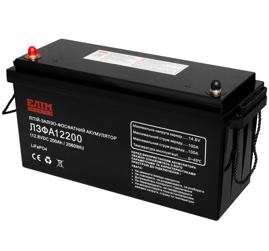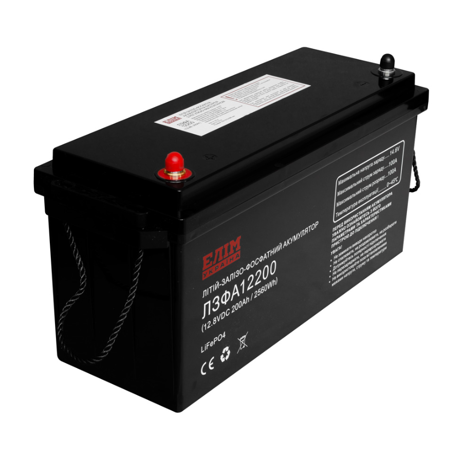 Elim-Украина предлагает литиевый аккумулятор модели ЛЗФА12-200, который отличается долговечностью, эффективностью и стабильной работой. Номинальное напряжение составляет 12,12.8 В, а ёмкость — 200 А·ч.
