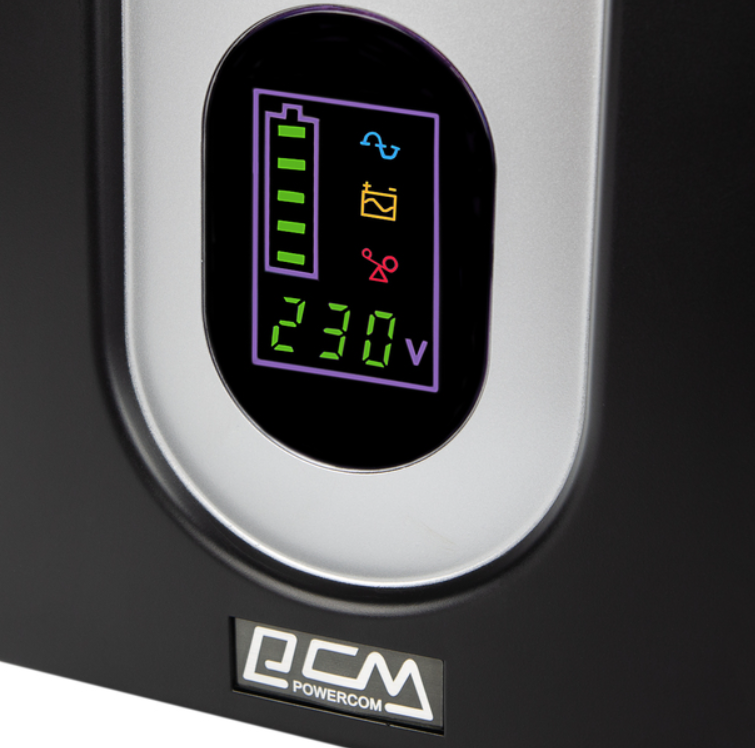 ИБП оснащен LCD-дисплей, который отображает параметры работы, а также функцией холодного старта для запуска при отсутствии сетевого напряжения.