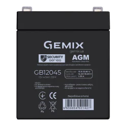 Акумулятор GEMIX моделі GB12045 створений для забезпечення стабільного енергопостачання. Номінальна напруга складає 12 В , а ємність — 4.5 А·год, що робить його оптимальним вибором для побутового та професійного використання.