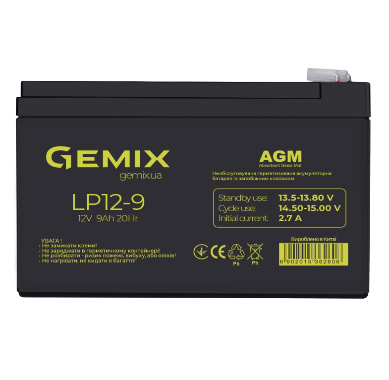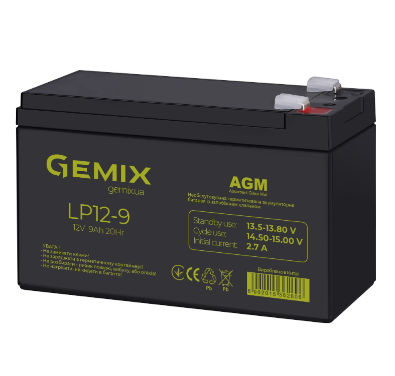 Акумулятор GEMIX моделі LP12-9.0 створений для забезпечення стабільного енергопостачання. Номінальна напруга складає 12 В , а ємність — 9 А·год, що робить його оптимальним вибором для побутового та професійного використання.
