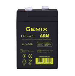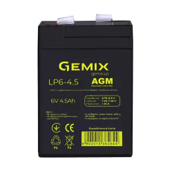 Акумулятор GEMIX моделі LP6-4.5 створений для забезпечення стабільного енергопостачання. Номінальна напруга складає 6 В , а ємність — 4.5 А·год, що робить його оптимальним вибором для побутового та професійного використання.
