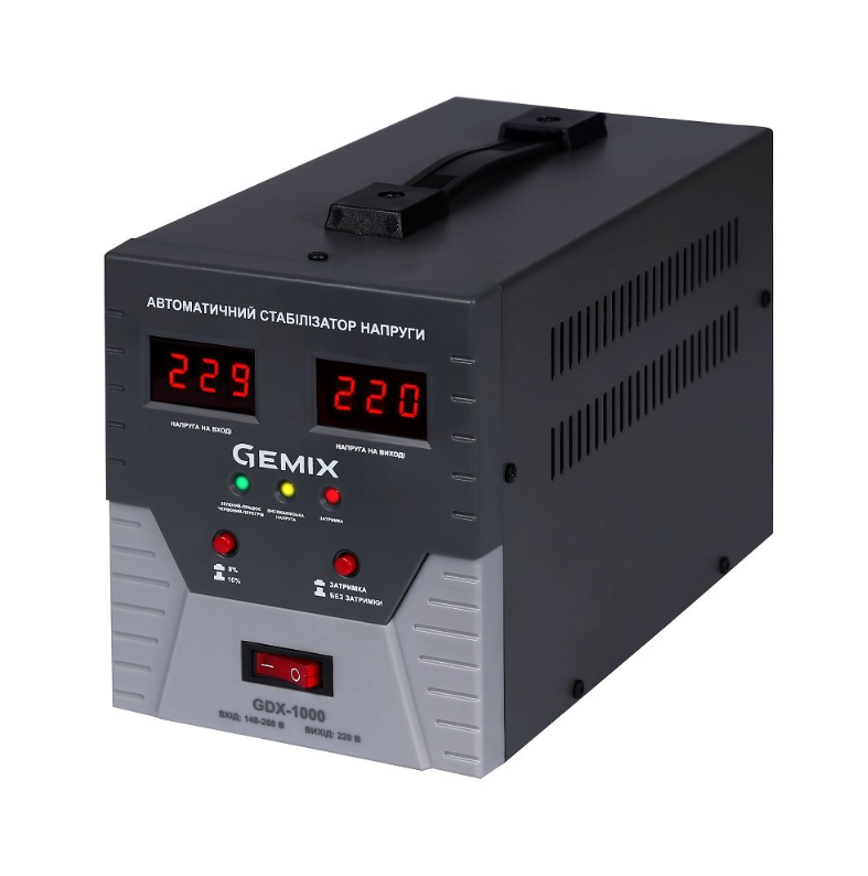 Стабілізатор напруги GEMIX моделі GDX-1000 призначений для захисту електроприладів від перепадів напруги та забезпечує стабільну роботу ваших пристроїв.