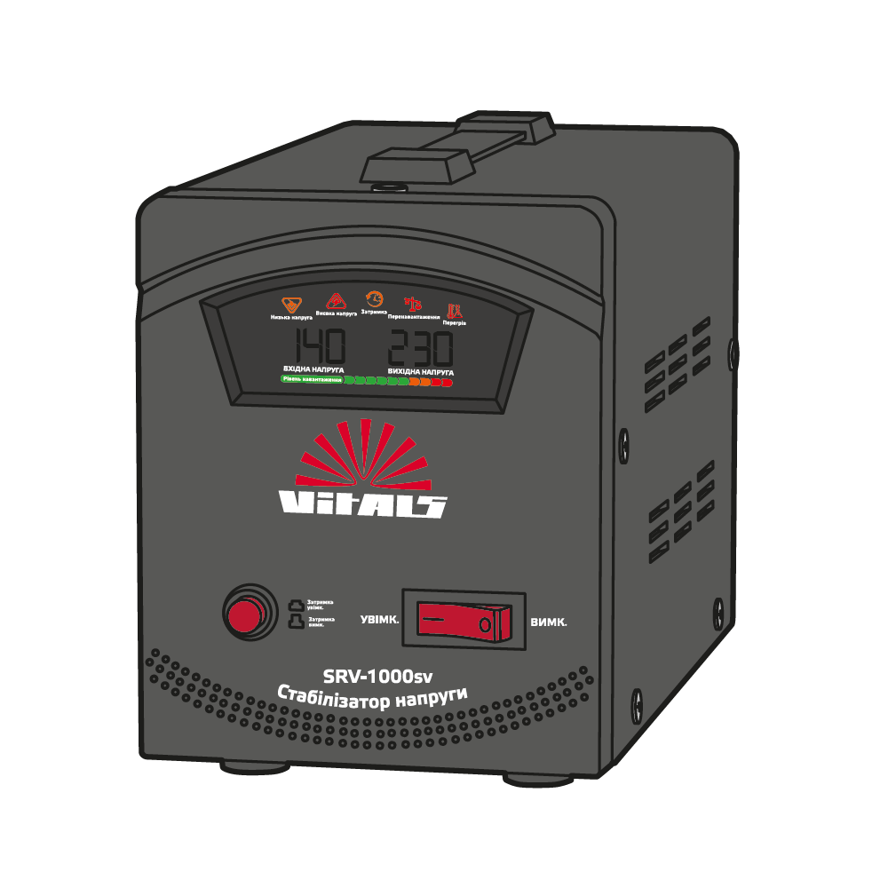 Стабілізатор напруги VITALS моделі Vitals SRV-1000sv призначений для захисту електроприладів від перепадів напруги та забезпечує стабільну роботу ваших пристроїв.