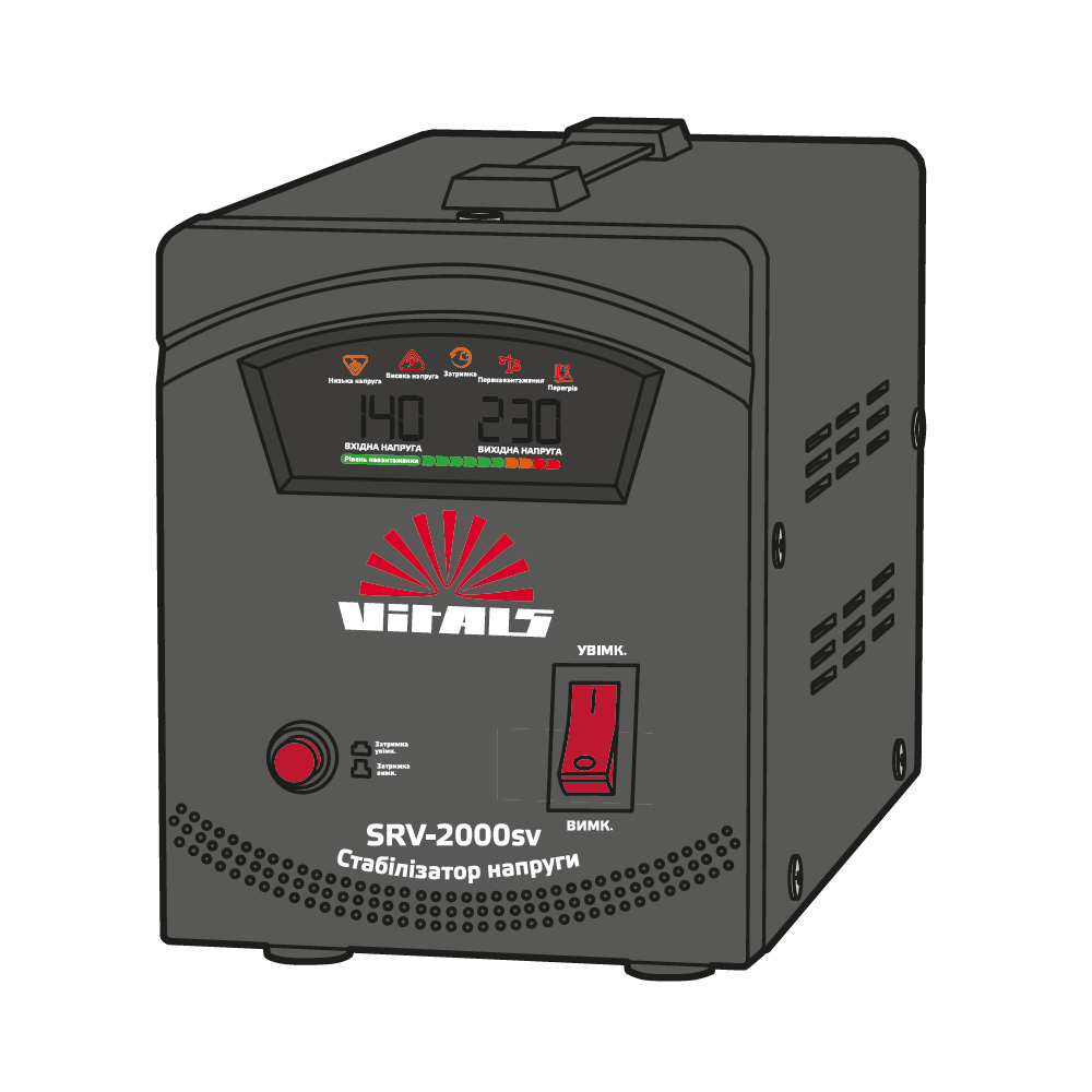 Стабілізатор напруги VITALS моделі Vitals SRV-2000sv призначений для захисту електроприладів від перепадів напруги та забезпечує стабільну роботу ваших пристроїв.